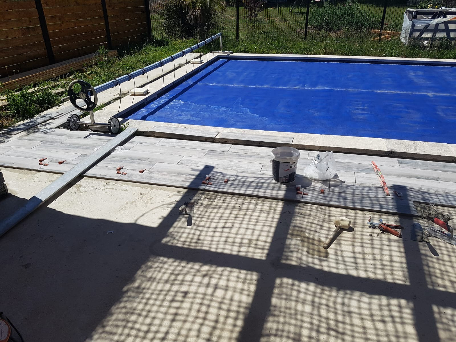- Mise en œuvre : Pose minutieuse des carreaux en grès cérame et des margelles.